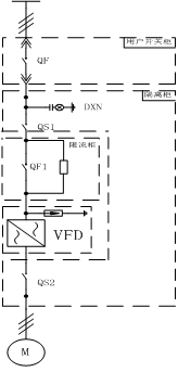 此方案為一拖一的典型方案,QS1、QS2為隔離開關(guān)。隔離柜作用:方便檢修時有明顯的斷點,確保人身和設(shè)備的安全。