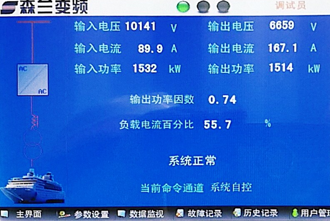 本套岸電系統(tǒng)在碼頭前沿的電纜接電箱和電纜卷盤車的設(shè)計(jì)上都運(yùn)用了國(guó)內(nèi)首創(chuàng)的防爆型設(shè)計(jì),防爆等級(jí)為IIBT4,實(shí)際大部分設(shè)備防爆等級(jí)達(dá)到了IIBT6,符合GB3836.1-2000《爆炸性氣體環(huán)境用電氣設(shè)備 第1部分:通用標(biāo)準(zhǔn)》要求,較傳統(tǒng)岸電系統(tǒng)更加安全可靠,符合危化碼頭接岸電需求。本系統(tǒng)核心部分變頻電源為2套森蘭SB70P系列變頻電源,單臺(tái)容量1MVA,采成直流共母排方案。SB70P系列低壓岸電變頻電源基于森蘭22年成熟低壓平臺(tái)技術(shù)的基礎(chǔ)上,針對(duì)岸電電源應(yīng)用需求特點(diǎn)定制開(kāi)發(fā)的新一代高性能變頻電源,具有動(dòng)態(tài)響應(yīng)快,過(guò)載能力強(qiáng),控制精度高等優(yōu)點(diǎn),無(wú)論是系統(tǒng)拓?fù)浣Y(jié)構(gòu)選擇,控制性能,還是散熱系統(tǒng)設(shè)計(jì),都首屈一指。