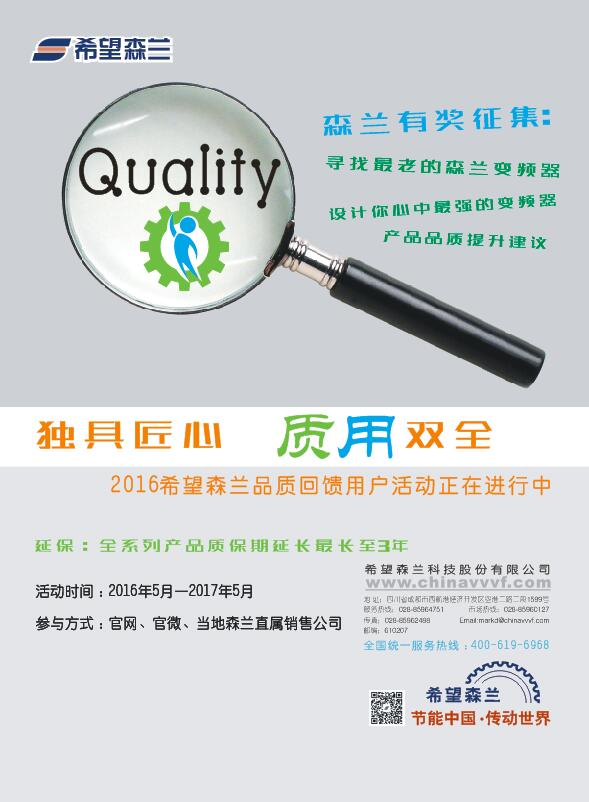 作為國內(nèi)變頻器行業(yè)領(lǐng)軍企業(yè)的希望森蘭科技股份有限公司(以下簡稱“希望森蘭”),在今年的5月份重磅推出了主題為“獨(dú)具匠心,質(zhì)用雙全”的品質(zhì)提升回饋活動(dòng),目前活動(dòng)正在火熱進(jìn)行中。