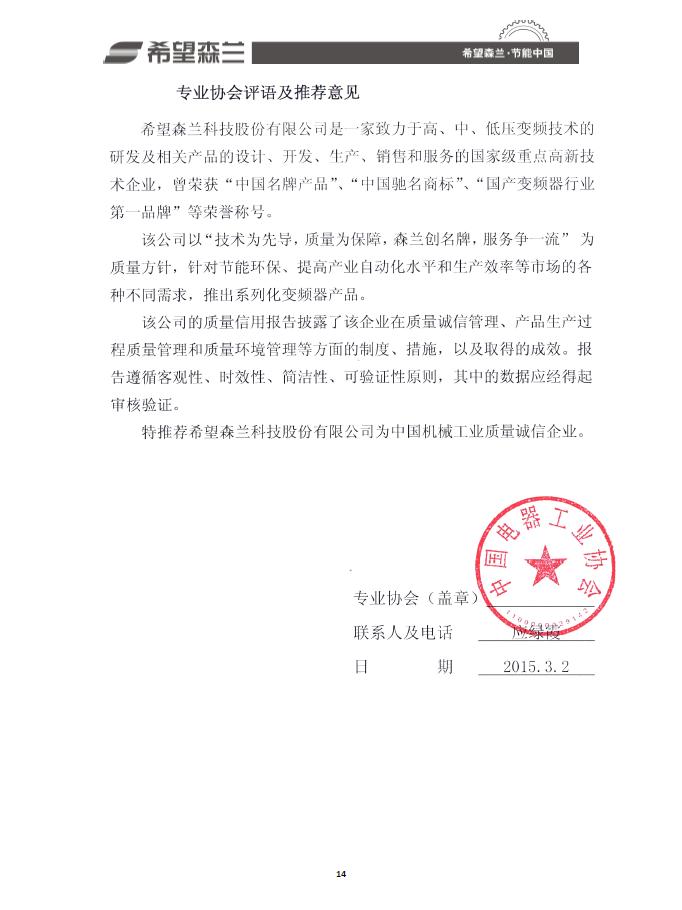 希望森蘭質(zhì)量信用報(bào)告